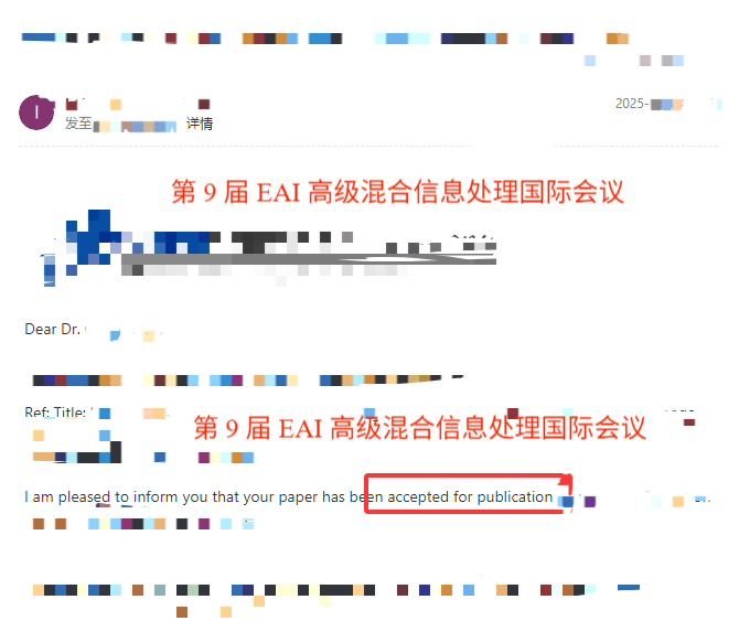 编号S**09**5论文已被第 9 届 EAI 高级混合信息处理国际会议(EAI ADHIP) 成功推荐至SCI发表;